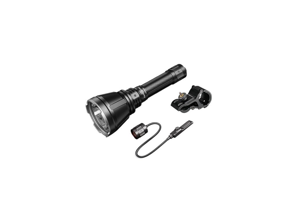 Nabíjateľné poľovnícke svetlo Fenix HT18R patrí k taktickým svetlám s najväčším dosvitom v ponuke . kapacitou 5000 mAh (akumulátor je súčasťou balenia) . So svietidlom sú kompatibilné montáže na dlhú zbraň a káblový spínač Fenix AER-05 .
