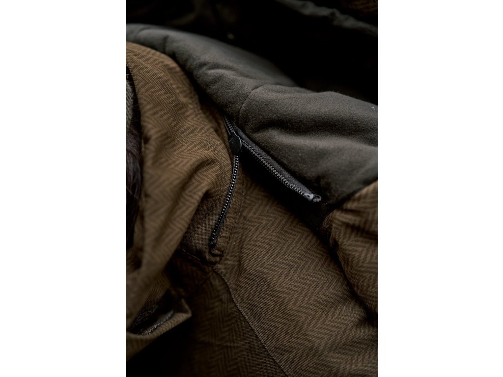 Dámska zateplená bunda Driven Hunt HWS je vrcholom inžinierstva poľovníckeho oblečenia a je navrhnutá tak, aby vynikala v tých najnáročnejších poľovačkách. Bunda je vyrobená z odolnej zmesi 84 % polyesteru a 16 % polyuretánu a môže sa pochváliť úpravou DWR bez PFAS, ktorá účinne odpudzuje nečistoty a vodu. Izoláciu zabezpečuje 120 g výplň Thermo Poly Shield Fill, doplnená o česanú podšívku na hornej časti chrbta, ktorá zaisťuje spoľahlivé teplo aj v najchladnejších podmienkach. Jadrom bundy je dvojvrstvová membrána HWS® Härkila Weather System, ktorá ponúka vetruodolnú aj vodeodolnú ochranu pred dažďom a snehom. Medzi premyslené dizajnové prvky patrí vysoký golier, odnímateľná kapucňa s tvarovacím drôtom a priliehavá predná klopa, ktorá chráni tvár pred ostrým vetrom. Dĺžka bundy je optimalizovaná tak, aby zakrývala bedrovú oblasť a udržiavala sedadlo v teple počas dlhého sedenia. Funkčnosť je v popredí s prvkami, ako je ľavé náprsné vrecko na vysielačku, vrecká na ohrievanie rúk, veľké predné vrecká s tichým magnetickým zapínaním a vstavaný držiak na náboje. Dodatočné pohodlie zaisťuje nastaviteľný pás a lem, tiché gombíky a manžety odolné voči vetru. Táto bunda je dôkazom záväzku spoločnosti Härkila k výkonu a spoľahlivosti v náročných loveckých podmienkach.