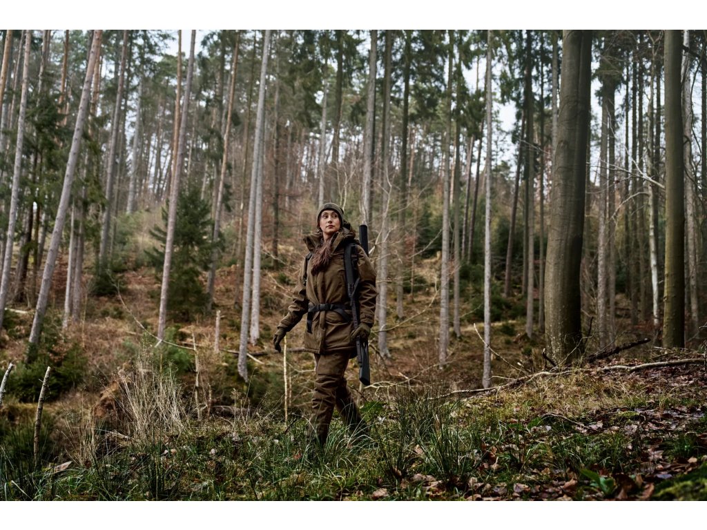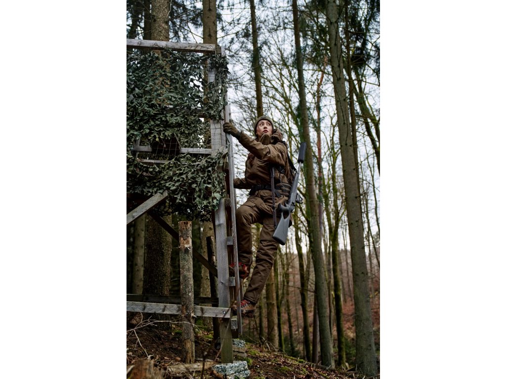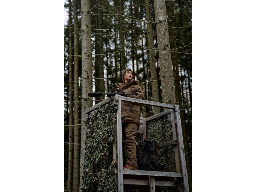 Táto dámska bunda ponúka odolnosť a teplo pri poľovačke. Je vyrobená z vodoodpudivej tkaniny, má membránu HWS a izoláciu Thermo Poly Shield Fill. Obsahuje praktické vrecká, odnímateľnú kapucňu a nastaviteľné prvky pre individuálne prispôsobenie. Určená pre náročné poľovnícke podmienky.