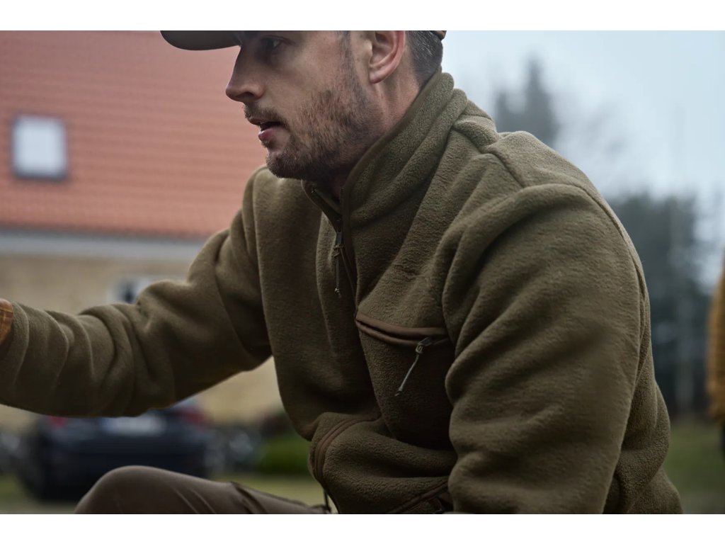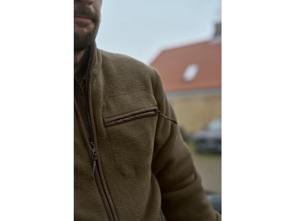 Ťažká 340g dvojito pletená flísová bunda s jahňacím efektom. Poskytuje výnimočné teplo a všestrannosť ako stredná alebo vrchná vrstva. Má praktické vrecká na zips, vrátane náprsného vrecka na vysielačku alebo GPS. Elastické lemy rukávov a vysoký golier zaisťujú priliehavé nosenie.