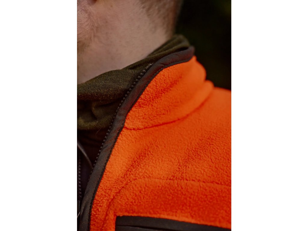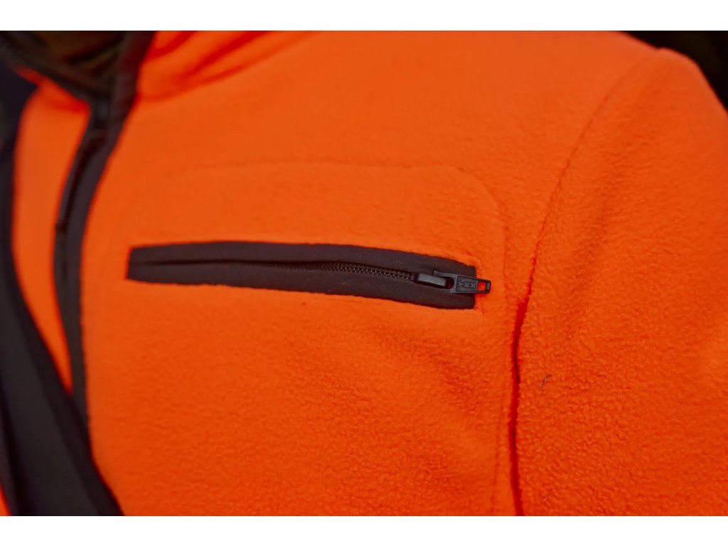 Flísová bunda Wildboar Pro Blaze: Vysoko reflexná flísová bunda s certifikátom OOP/CE. Vyrobená z vysoko elastického, husto pleteného materiálu pre odolnosť voči vetru a tichý chod. Obsahuje elastické panely a viacero vreciek. Navrhnutá pre bezpečnosť a výkon počas poľovačky.