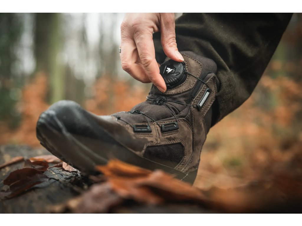 Čižmy Enduro Explore Aya sú špeciálne navrhnuté pre poľovníčky, ktoré hľadajú pohodlie, odolnosť a spoľahlivosť v náročnom teréne. Tieto ultraľahké čižmy majú kopyto špeciálne určené pre ženy a kombinujú nubukovú kožu s nepremokavou podšívkou Sympatex bez PFAS. Čižmy uprednostňujú stabilitu s pevnou oporou päty a ergonomickým strihom. Vďaka medzipodrážke z EVA a tvarovanej PU stielke ponúkajú vynikajúce tlmenie nárazov a odraz energie. Systém šnurovania Dial Lock značky Seeland umožňuje rýchle a bezpečné nastavenie. Vďaka zosilneným blatníkom a odolnej gumenej podrážke poskytujú tieto čižmy vynikajúcu priľnavosť a ochranu, vďaka čomu sú ideálne na poľovačku, turistiku alebo venčenie psov v rôznych podmienkach.
