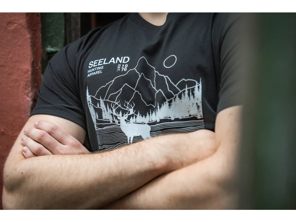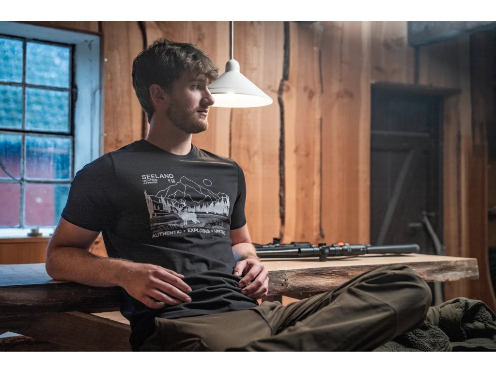 Tričko Territory vyniká svojou minimalistickou bielou grafickou potlačou na čiernom pozadí. Ponúka klasický strih a maximálne pohodlie, čo umožňuje poľovníkom prejaviť svoju vášeň a zároveň sa odlišuje od typických zelených, hnedých alebo maskáčových vzorov.