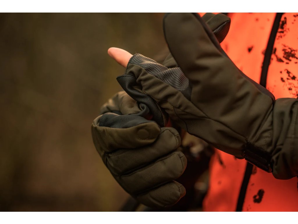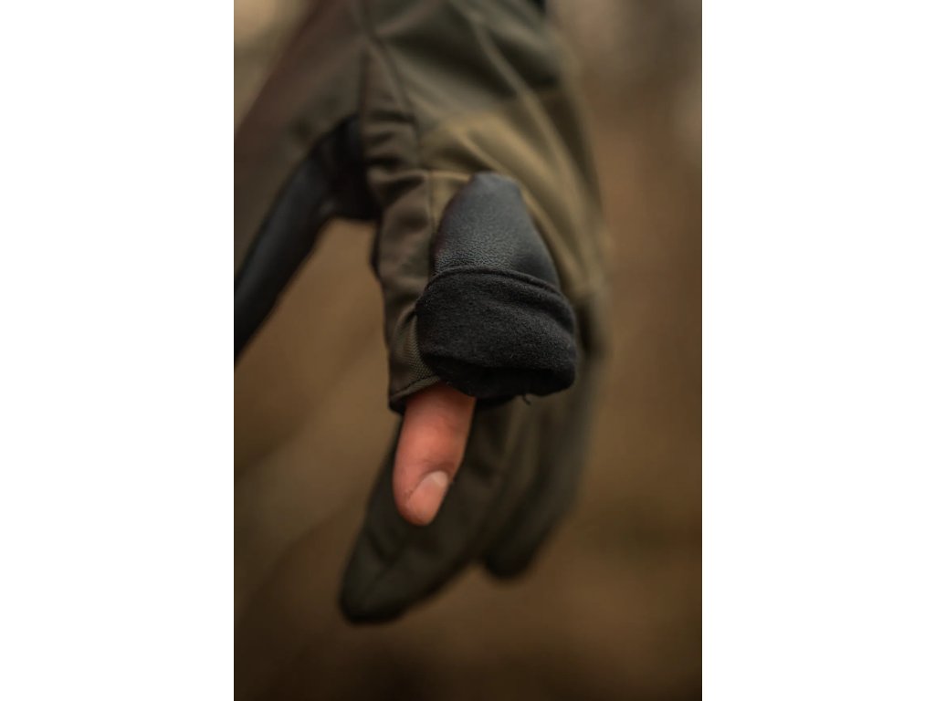 Rukavice Trigger Fold-Back ponúkajú teplo a presnosť pri love v chladnom počasí. Sú izolované materiálom Thinsulate, majú prehnuté ukazováky, protišmykovú dlaň a sú kompatibilné s dotykovou obrazovkou. Nastaviteľný remienok na zápästie a mäkká podšívka poskytujú pohodlie počas dlhých loveckých výjazdov.